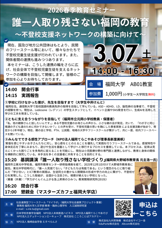 福岡市城南区七隈8-19-1 福岡大学人文学部 教育・臨床心理学科 入江誠剛研究室 |